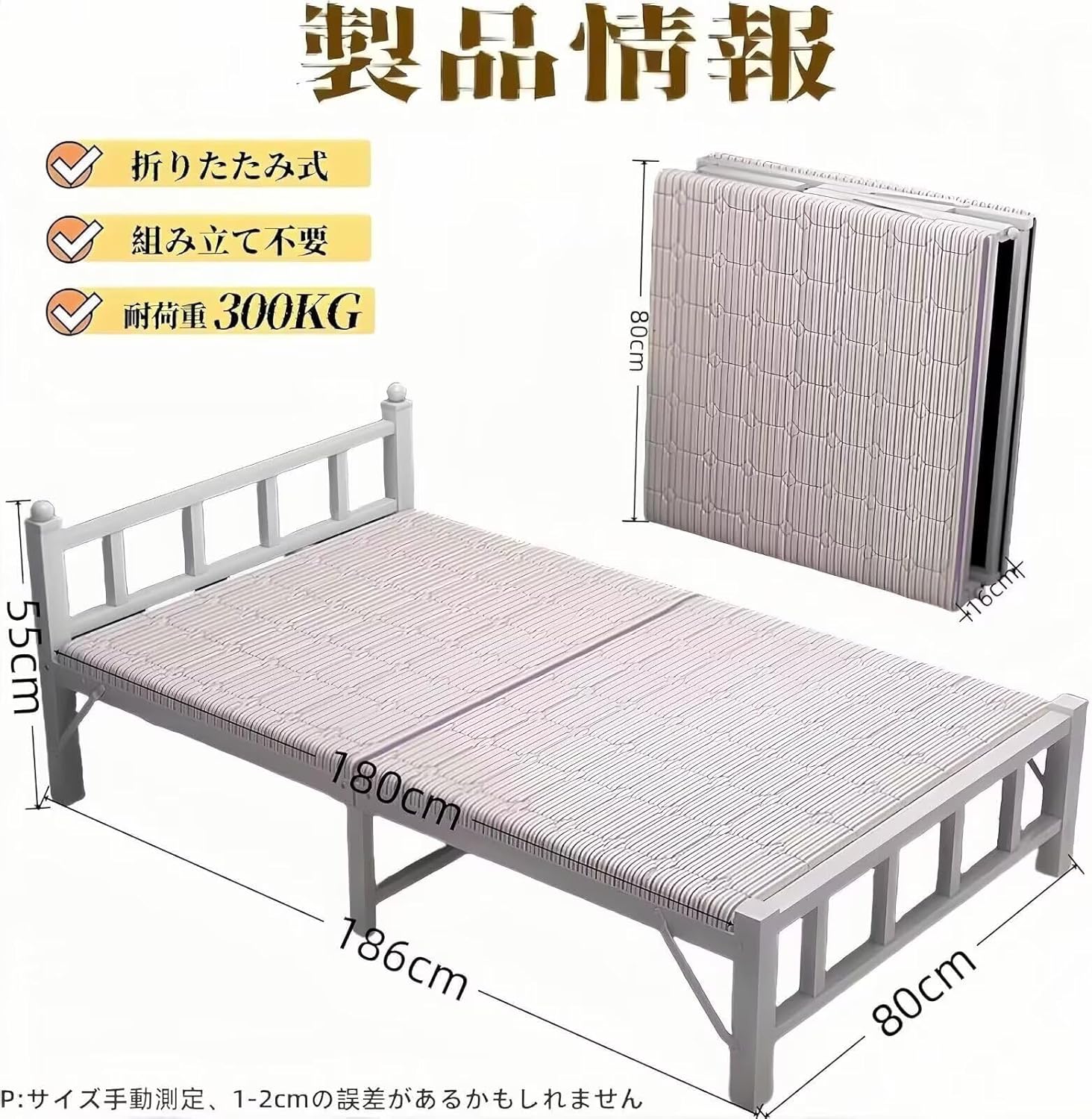 耐荷重300kg 折り畳みベッド シルクコットンマットレス付き 炭素鋼素材 三角形の補強 頑丈で耐久性 シングルベッド 安定 静音 通気 完成品
